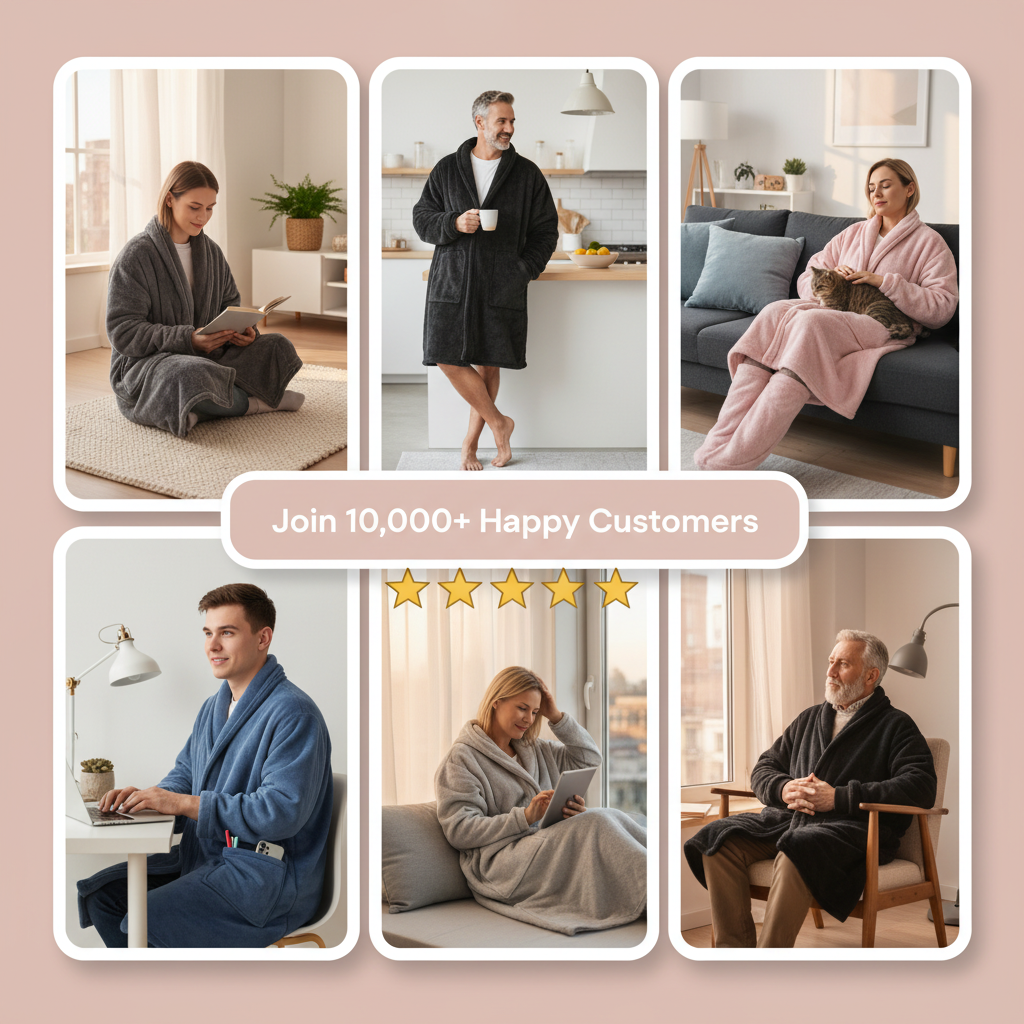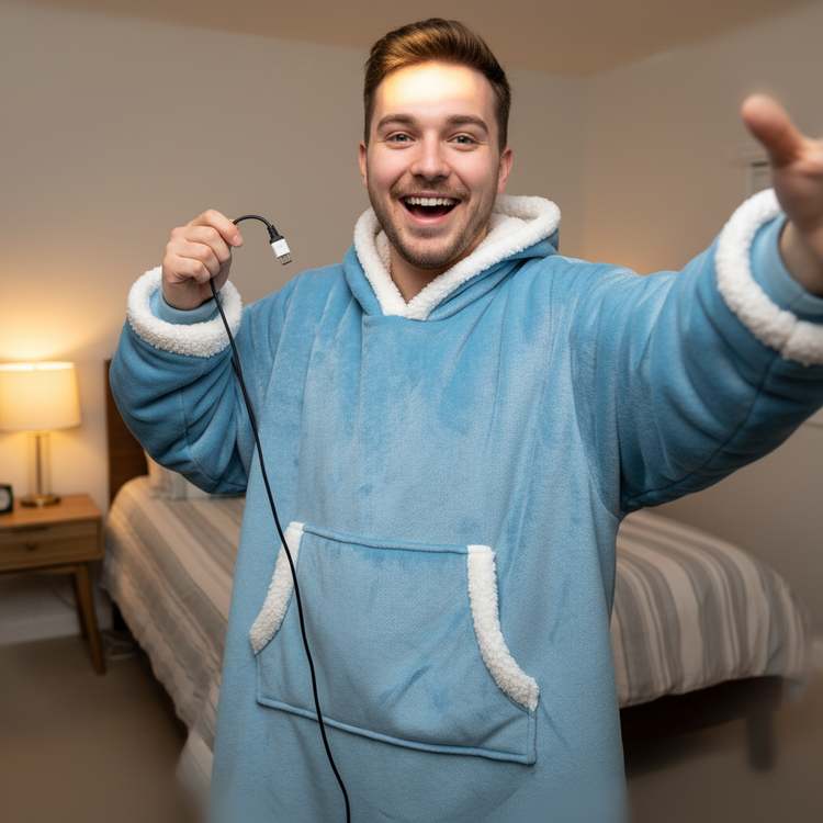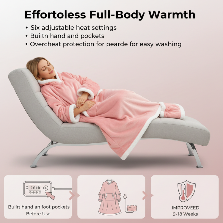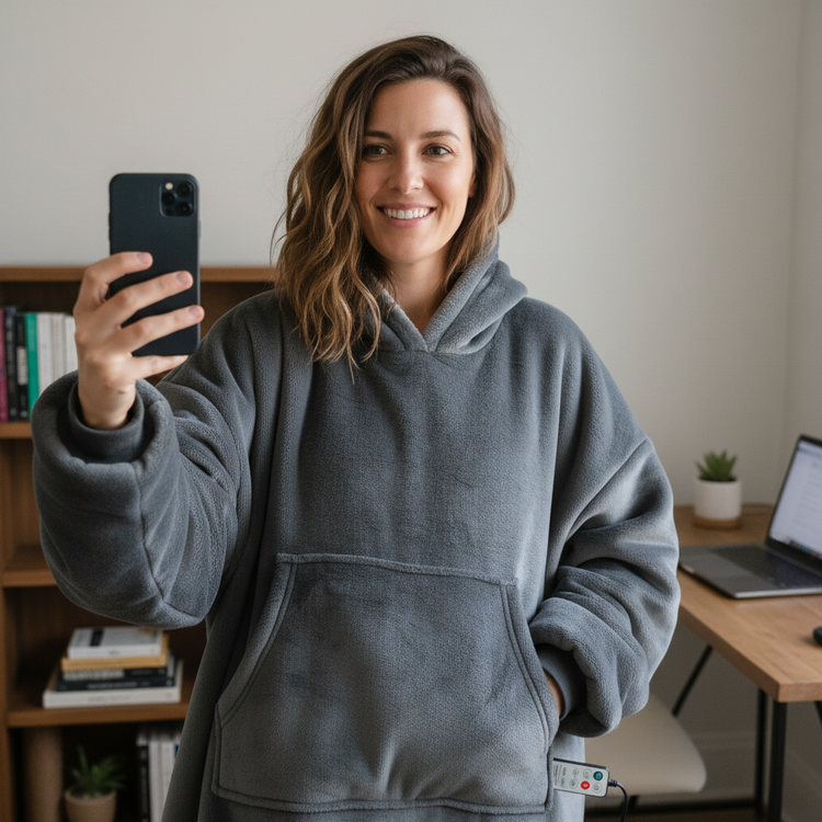 From chilly mornings to movie marathons, our wearable blanket wraps you in soothing warmth. See real users enjoying hands-free comfort with convenient pockets and personalized heat levels.
